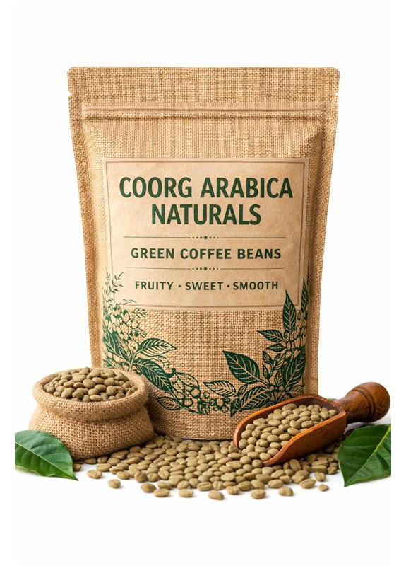 Coorg Arabica Naturals green beans are appreciated for their balanced structure, sweetness, and aromatic complexity once roasted.